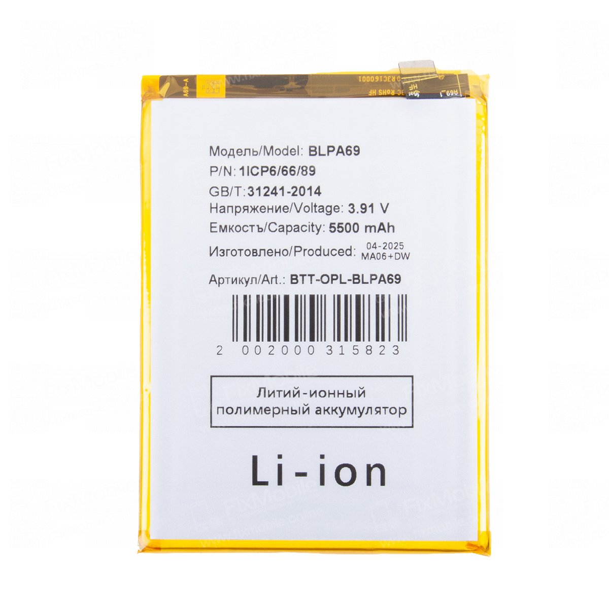 • Тип товара:Аккумулятор