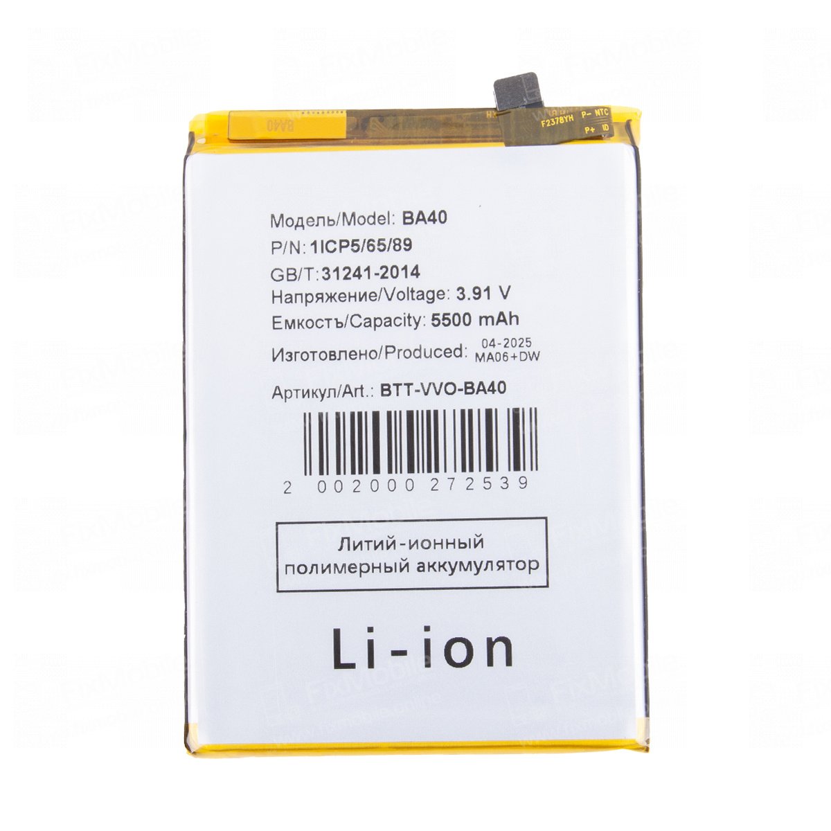 • Тип товара:Аккумулятор